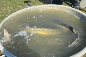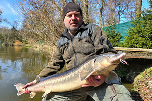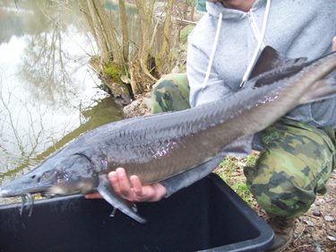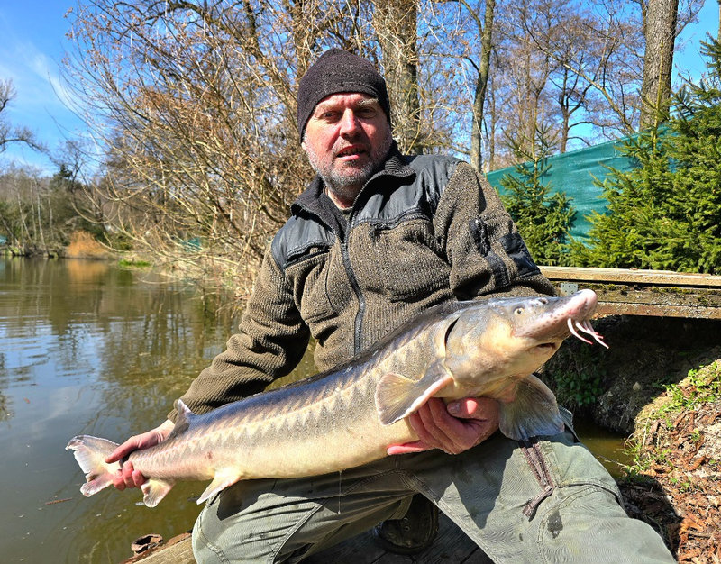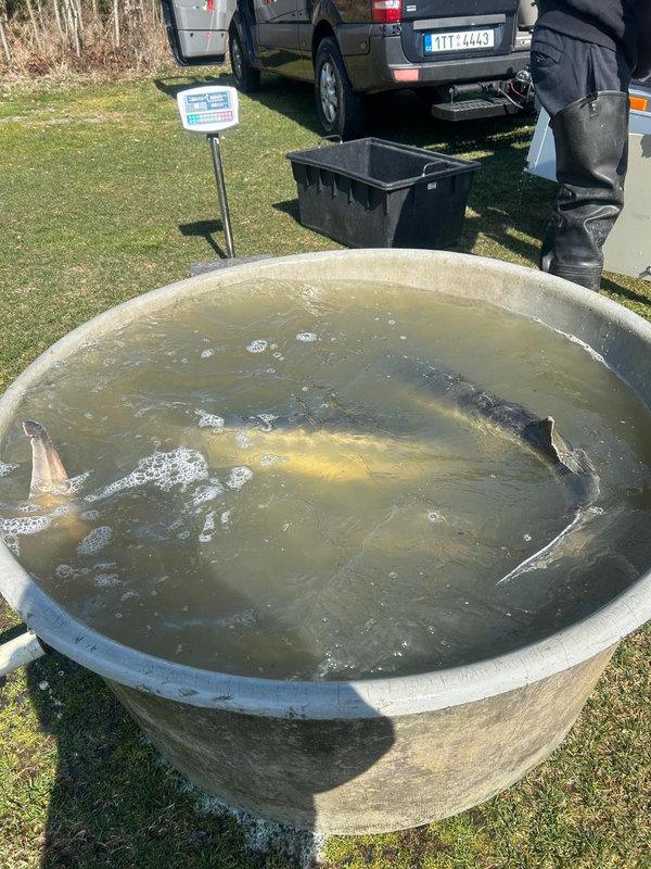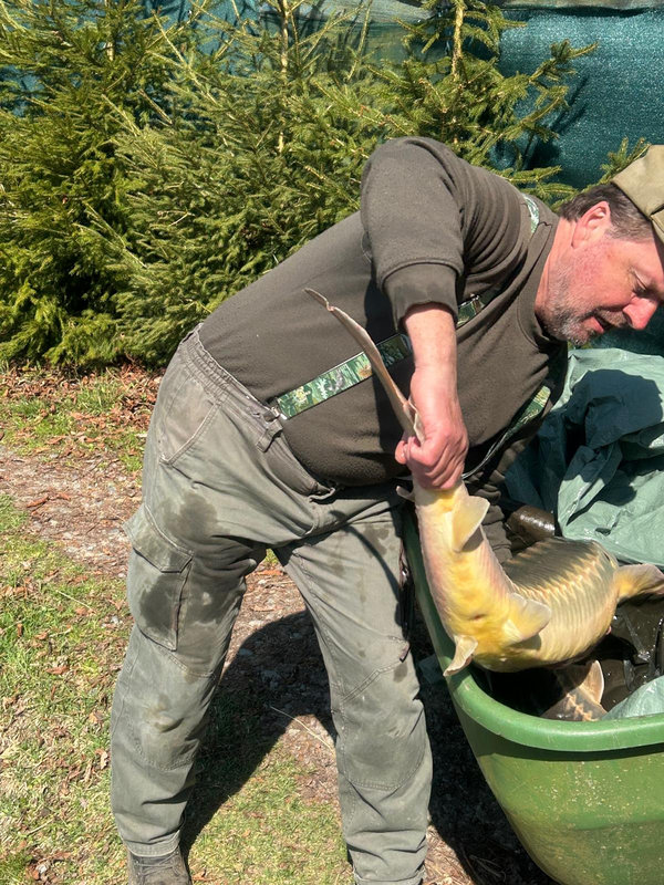 Duben 2025 další dosazování krásných jeseterů 13 až 18 kg.